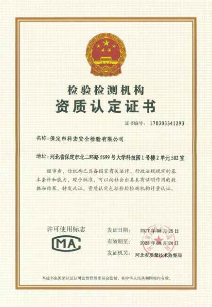 计量认证证书...